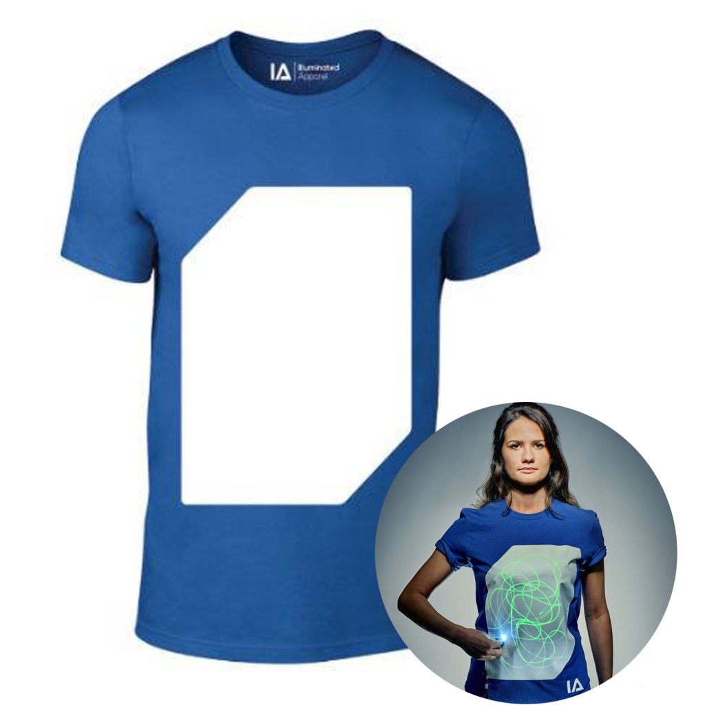 Modré zábavné iluminačné tričko /zelená svietiaca plocha/ + laser pero